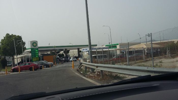 La gasolinera estará a tu derecha. Llena el depósito del coche.